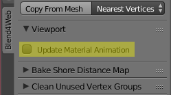从这个版本开始我们将持续提高插件与旧版的Blender的兼容性。特别是这个版本与Blender 2.76与Blender 2.77兼容。 Ryan Wendell Blend4Web 工具面板现在提供了一个新的选项,Update Material Animation(默认情况下禁用)。如果启用,此选项允许你在Blender的视区忠观看和调整动画的节点材质。